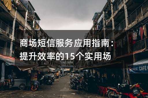 在这个信息爆炸的时代,商场运营者正面临着前所未有的挑战。如何在正确的时间将关键信息传递给目标人群?我们整理了商场实际运营中最有效的15个短信应用场景,为您呈现一套完整的解决方案。