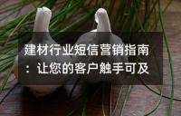建材行业中的短信营销指南,介绍了如何通过多样化的内容、精准获客和频率把控来实现高效的短信营销。文章强调了内容创新、精准定位和尊重客户的重要性,提供了实用思路和工具,帮助企业在建材行业中提升客户转化率和品牌口碑。