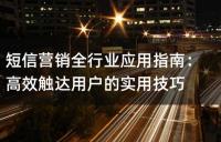 短信营销在全行业的应用指南和实用技巧。文章介绍了传统实体行业、服务行业以及互联网+行业的短信营销创新应用场景。通过实际案例,展示了短信营销如何精准触达用户,提升业务效率和效果。例如,通过发送会员专属优惠短信提升餐饮零售业的销售额,通过发送课程预习资料