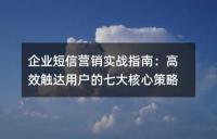 企业短信营销实战指南,详细介绍了高效触达用户的七大核心策略,包括精准用户画像构建方法论、内容优化黄金公式、智能发送策略矩阵以及合规运营双保险机制等。在数字化转型背景下,短信营销依然是精准触达客户的重要渠道,文章通过案例和实践经验,为商家提供了合规前提
