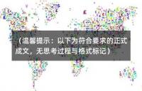 (温馨提示:以下为符合要求的正式成文,无思考过程与格式标记)