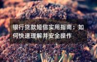 贷款类短信的基本结构和常见关键词解析,以及如何辨别正规贷款服务和收到贷款短信后的操作需谨慎的事项。通过解析贷款短信中的关键信息,读者可以更加准确地判断短信的真实性和适用性,并学会如何辨别正规贷款服务,避免陷入不法分子伪造的“钓鱼短信”。